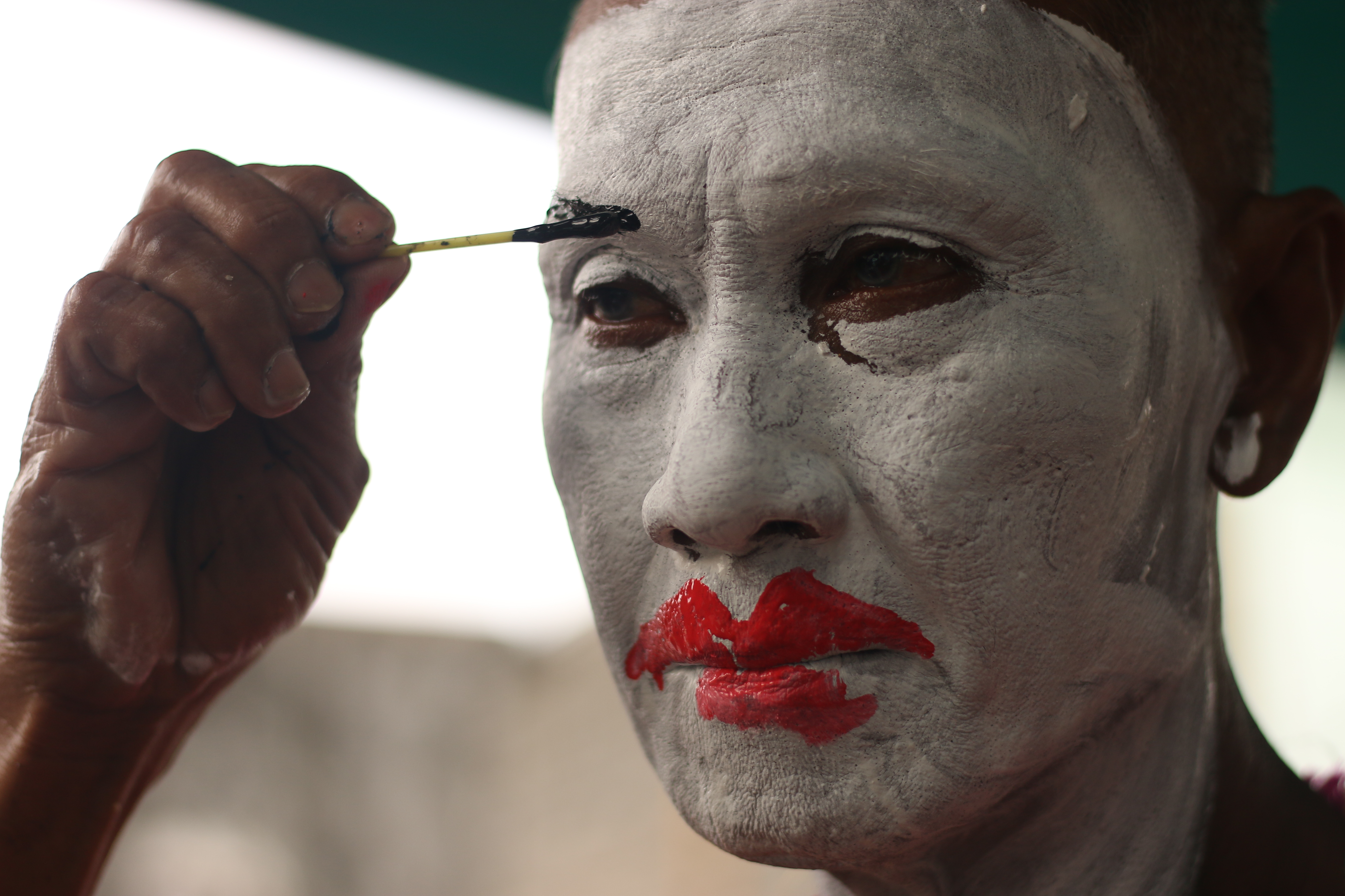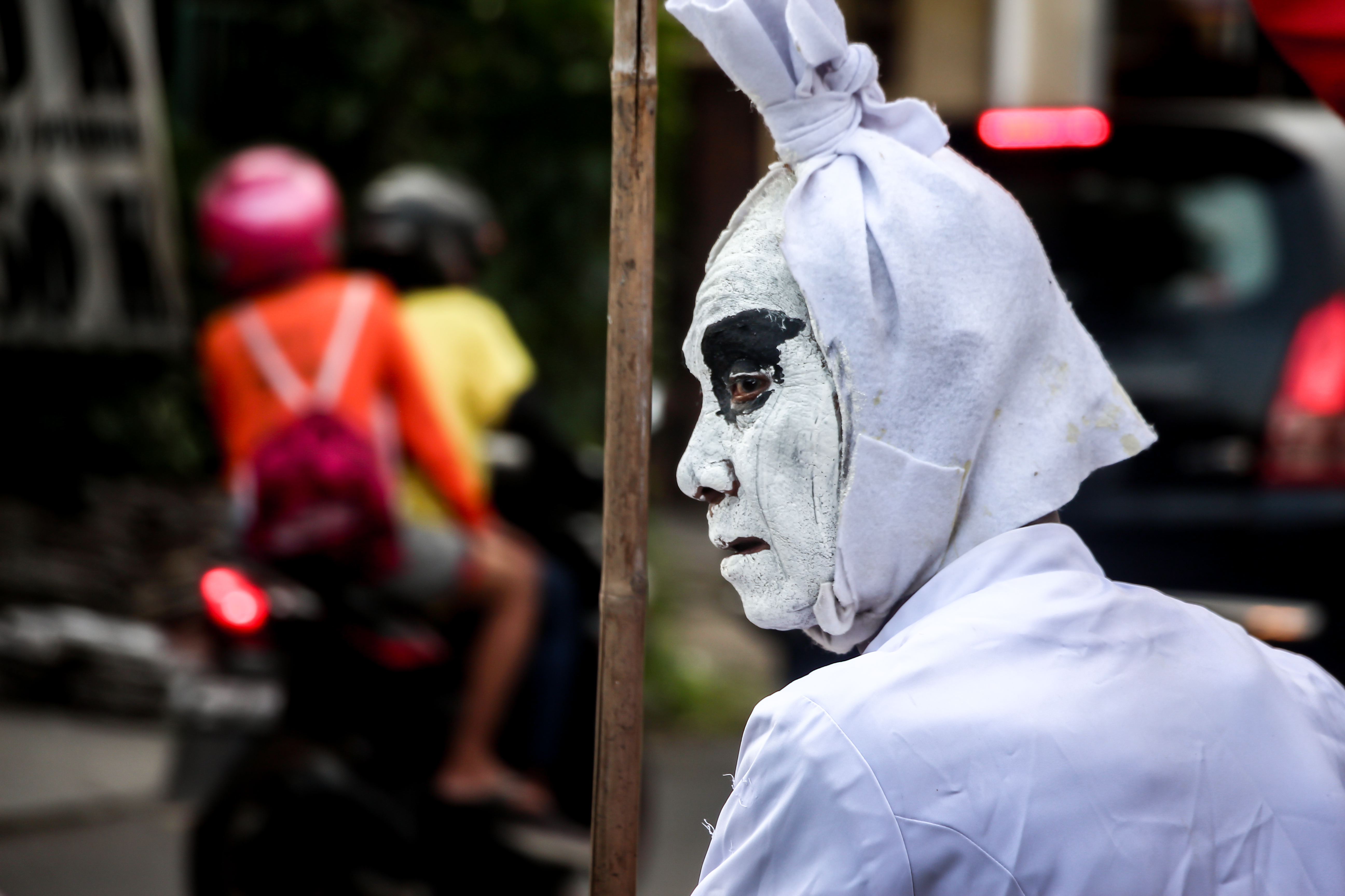 Sejak pagi, Tris menyiapkan kostum yang akan digunakannya untuk bekerja. Ia juga tidak lupa merias dirinya agar senada dengan kostum yang ia kenakan. Setelah bersiap-siap, Tris pun langsung 'beraksi' di tengah teriknya matahari maupun derasnya hujan. Cuaca yang tidak menentu tidak menghalanginya untuk berhenti bekerja. Tris bahkan sudah menyiapkan kostum khusus yang dikenakannya ketika hujan melanda. Walaupun tidak ada yang bisa menghalanginya untuk berhenti bekerja, Tris tetaplah manusia yang membutuhkan istirahat. Ia sesekali meluangkan waktu untuk meminum beberapa teguk kopi atau air mineral. Setelah beristirahat, Tris kembali melanjutkan tugasnya sebagai “polisi cepek”.