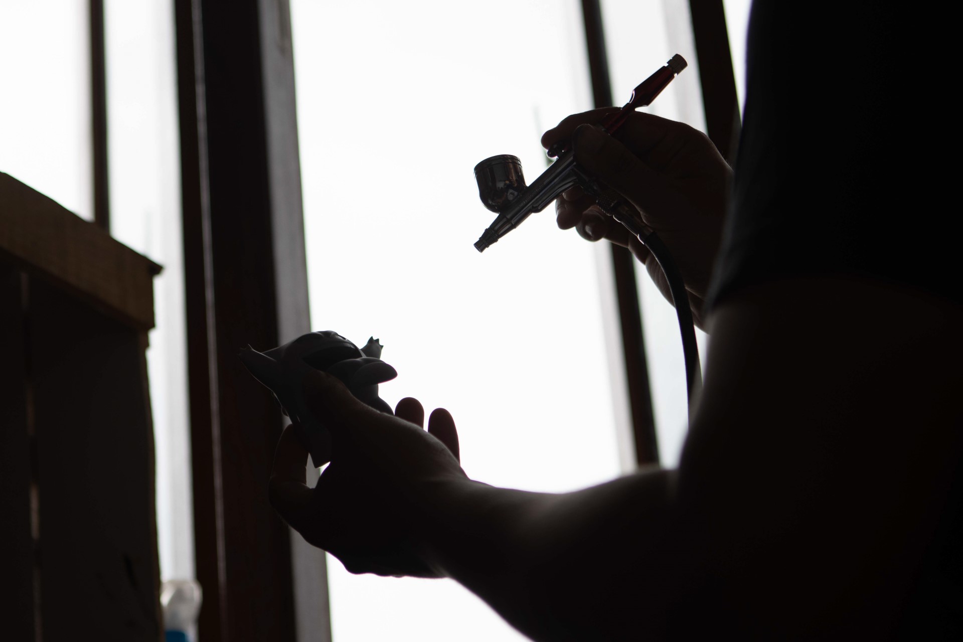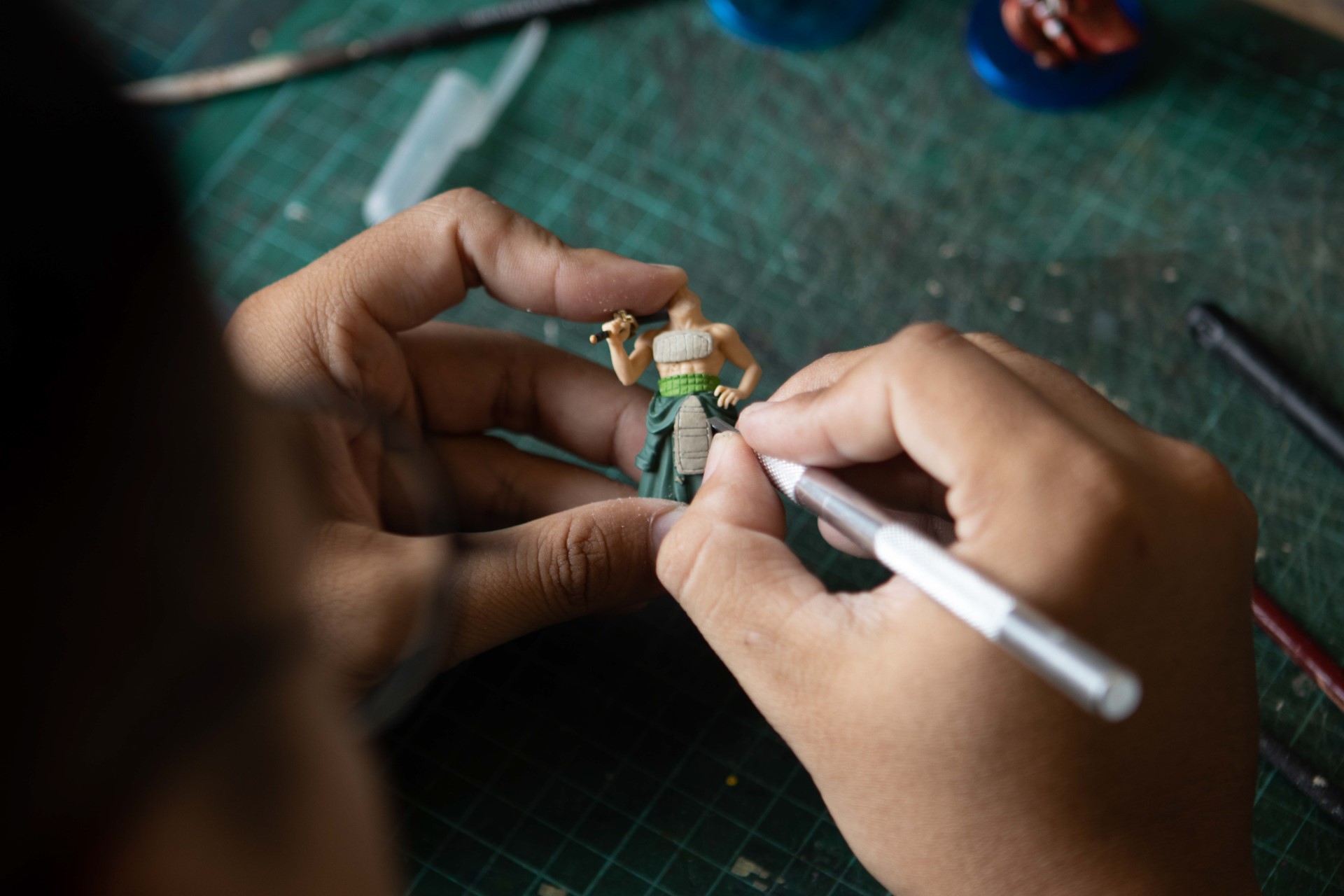 Cyndo yang sedang merapikan figur karakter kecil dengan menggunakan pisau presisi.