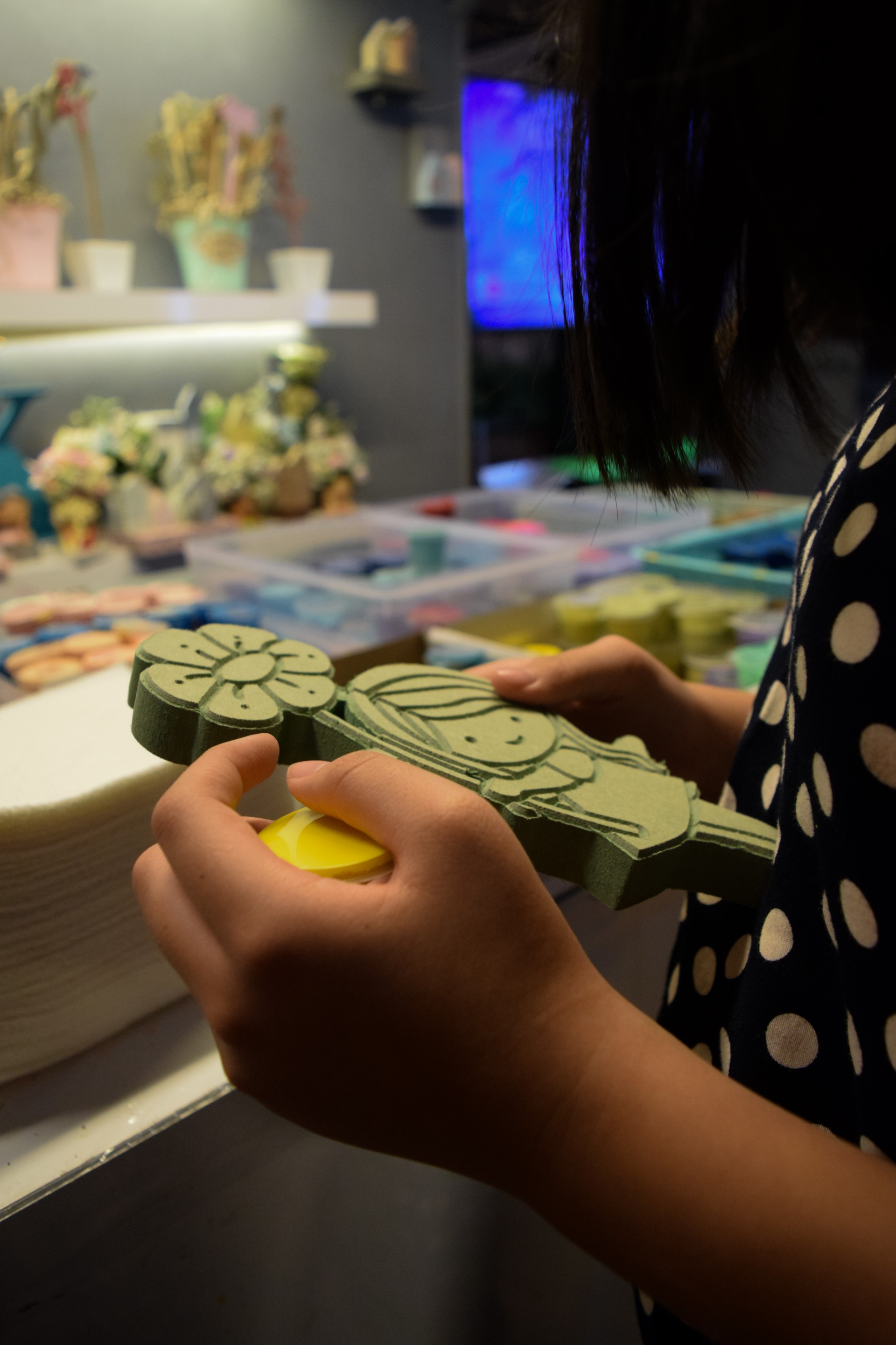 Warna, tawa, dan kreativitas. Sebuah stan dengan berbagai patung kayu nampak di area Food Society Pakuwon Mall, ramai oleh pelajar yang bertandang selepas kelas. Di kala banyak bisnis ambruk karena pandemi, Kaylee Stefanoline malah bisa merintis miliknya. I’m Not Trash menawarkan pengalaman melukis hasil daur ulang kayu bekas. Kayu yang sudah digiling dan dicetak kembali dapat menjadi patung dan dekorasi bernilai jual. Kaylee mendapat ide untuk mendaur ulang ketika melihat banyaknya sisa kayu yang tergeletak dari pekerjaan ayahnya. Perempuan berusia lima belas tahun ini ingin berdampak bagi lingkungan sekitarnya. Selain mendaur ulang kayu, gadis yang lebih akrab disebut Kay ini juga berharap suatu hari bisa mulai mendaur ulang kantong dan botol plastik.