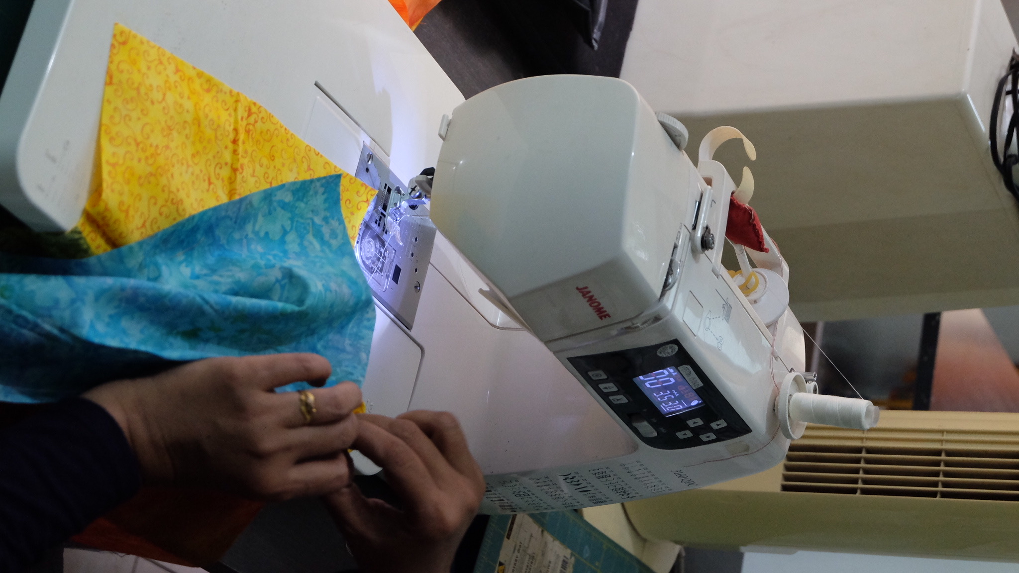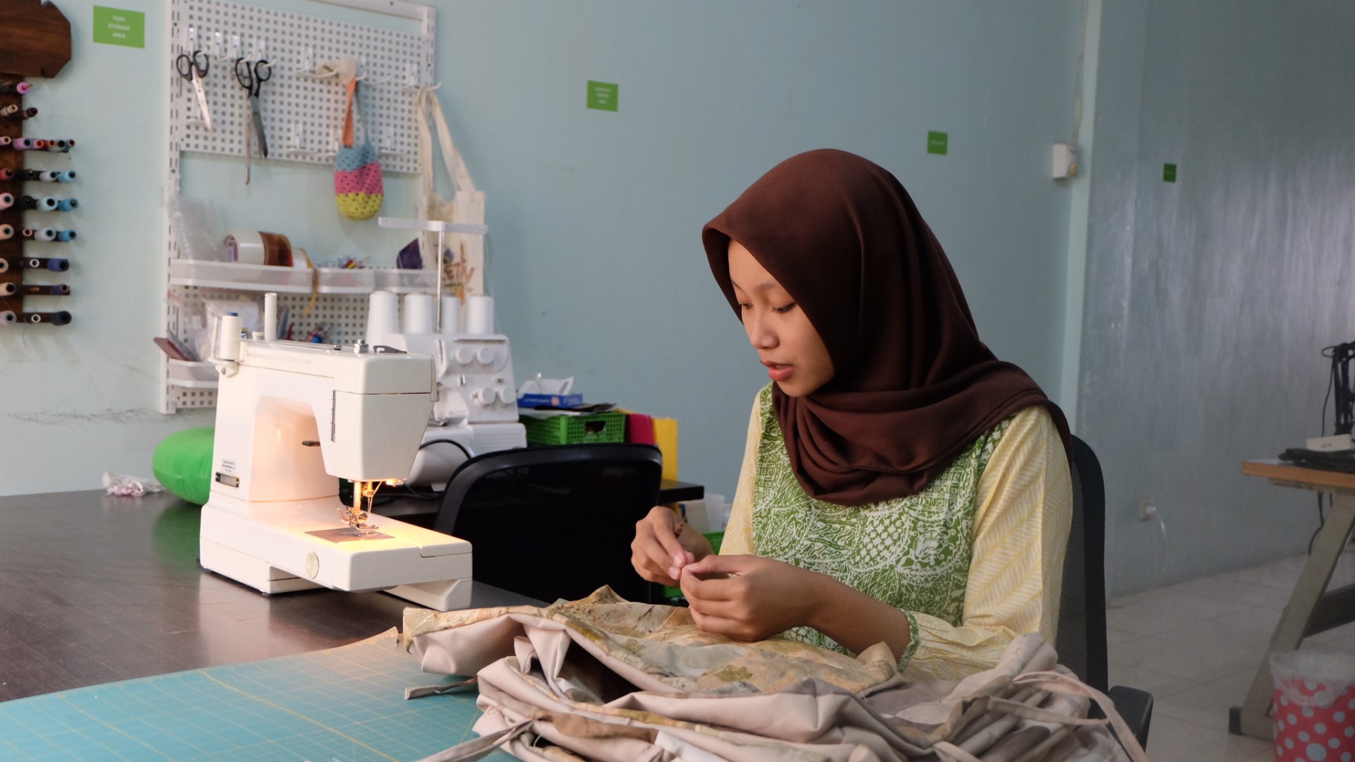 Anak Bu Eka yang membantu Ibunya untuk menjahit karya tas.