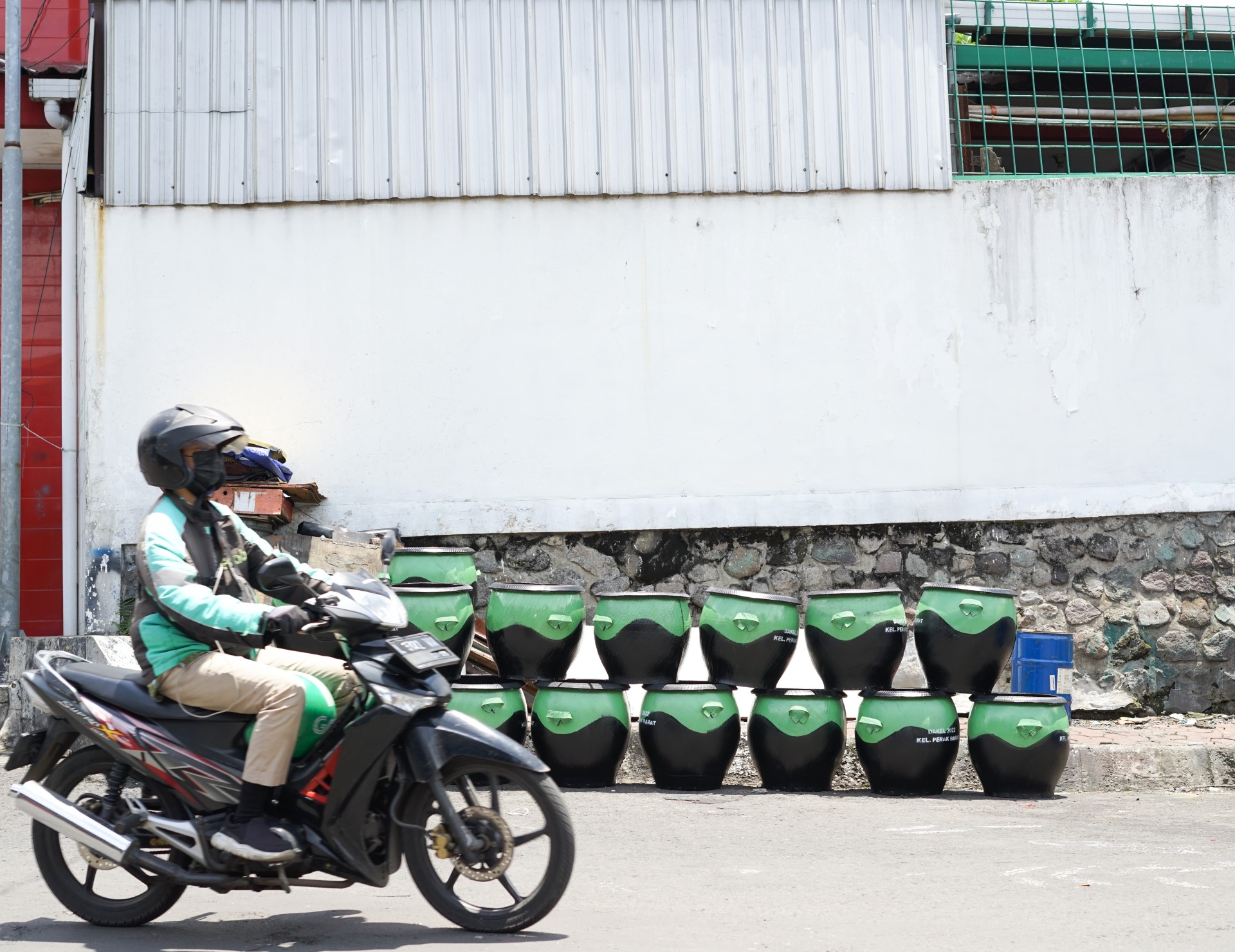 Bak sampah terpajang di sepanjang kawasan Jalan Waspada.