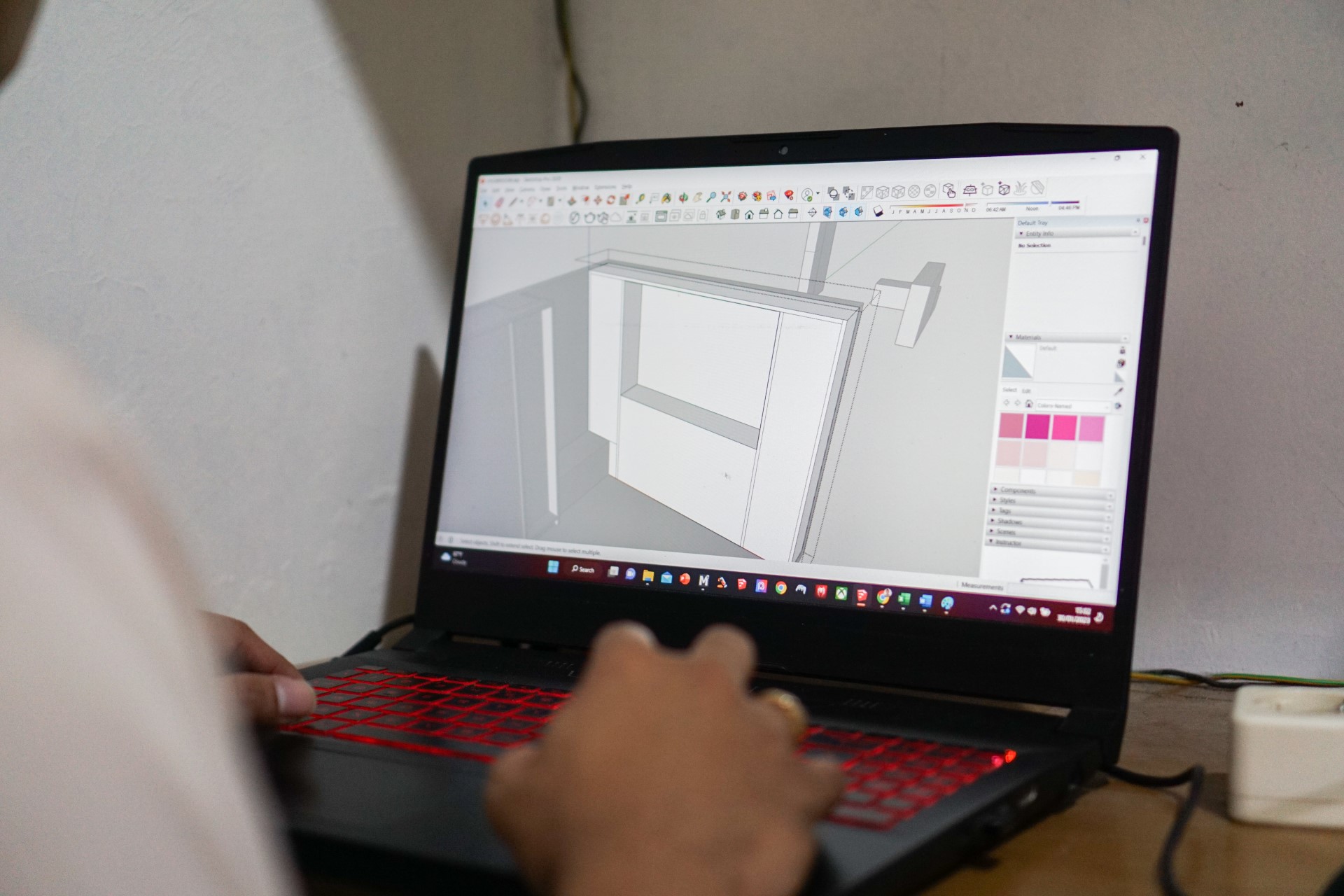 Proses pembuatan gambar desain sebuah lemari ruang keluarga.